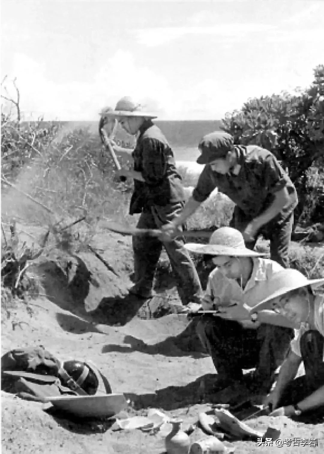在解放军和民兵的配合下,广东考古人在西沙群岛的考古发掘现场