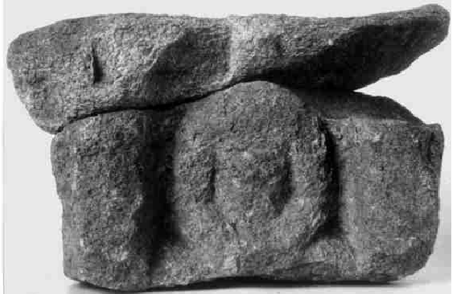 1926年入藏,砂岩。两个圆拱形龛内各雕一坐佛。风化严重,已面目全非。坐佛形象与云冈中部窟群窟外立壁所雕千佛相同,应是云冈三期作品。
