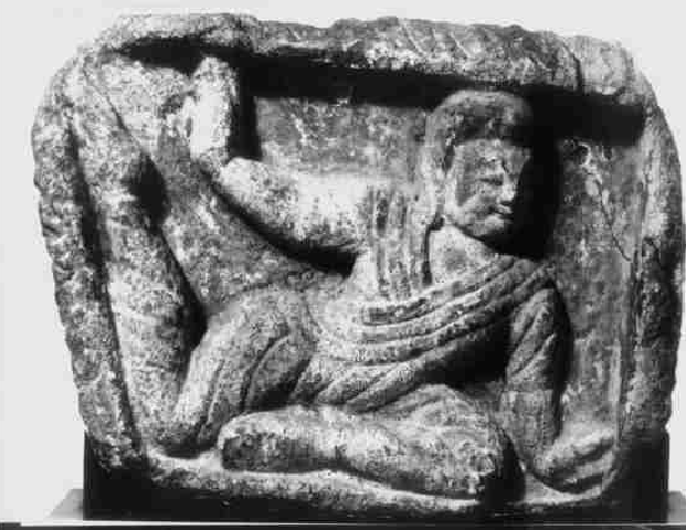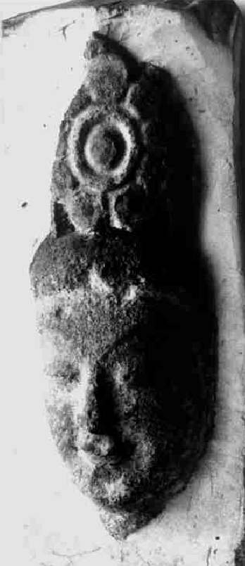 1921年购入,砂岩,高浮雕高29厘米高髻,发髻上部呈三角瓜面相丰满,神情安祥,为一正面像表面风化较严重,鼻头残损造型与云冈石窟第g窟后室南壁拱门上侧供养天,第7窟后室南壁拱门上侧及第6窟南壁上层西侧佛龛右侧供养天同,应是云冈二期的典型作品。