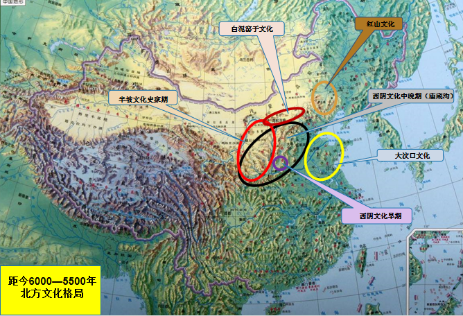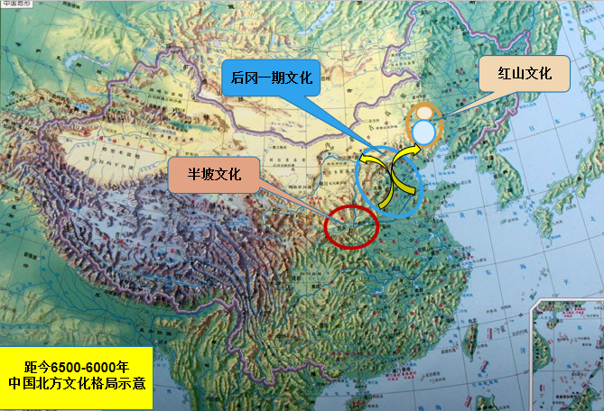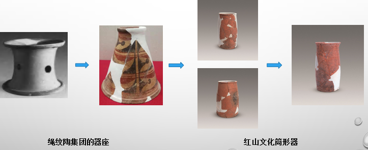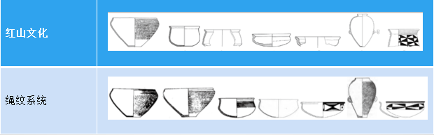 至少在距今8000年前,在中国北方就形成了三个大的族群集团,他们分别以绳纹、之字纹和素面陶器为特征。到距今7000—6500年间,绳纹陶集团衍生出了小口平底瓶和小口尖底瓶,鼓腹罐,发展了彩陶,并在素面陶集团的参与下,进而分化成以鱼纹彩陶为特征的一支和以“花”样彩陶为特征的另一支(后者的谱系尚未确定,但是绳纹与素面陶集团碰撞的产物应当是肯定的),他们可能就是传说中的华夏集团;素面陶集团则将釜和支座的组合进化形成了鼎,鼎与壶的组合成为这个集团最具特征的陶器器型,这个集团可能与传说中的东夷集团有关。之字纹陶集团在发展之字纹筒形罐主体的器物群基础上,更是升华了对龙形象的表述,充分体现了这是一个信仰龙的集团。今天讲座的主题红山文化和红山文明就是这三个集团碰撞、交流、融合的产物。