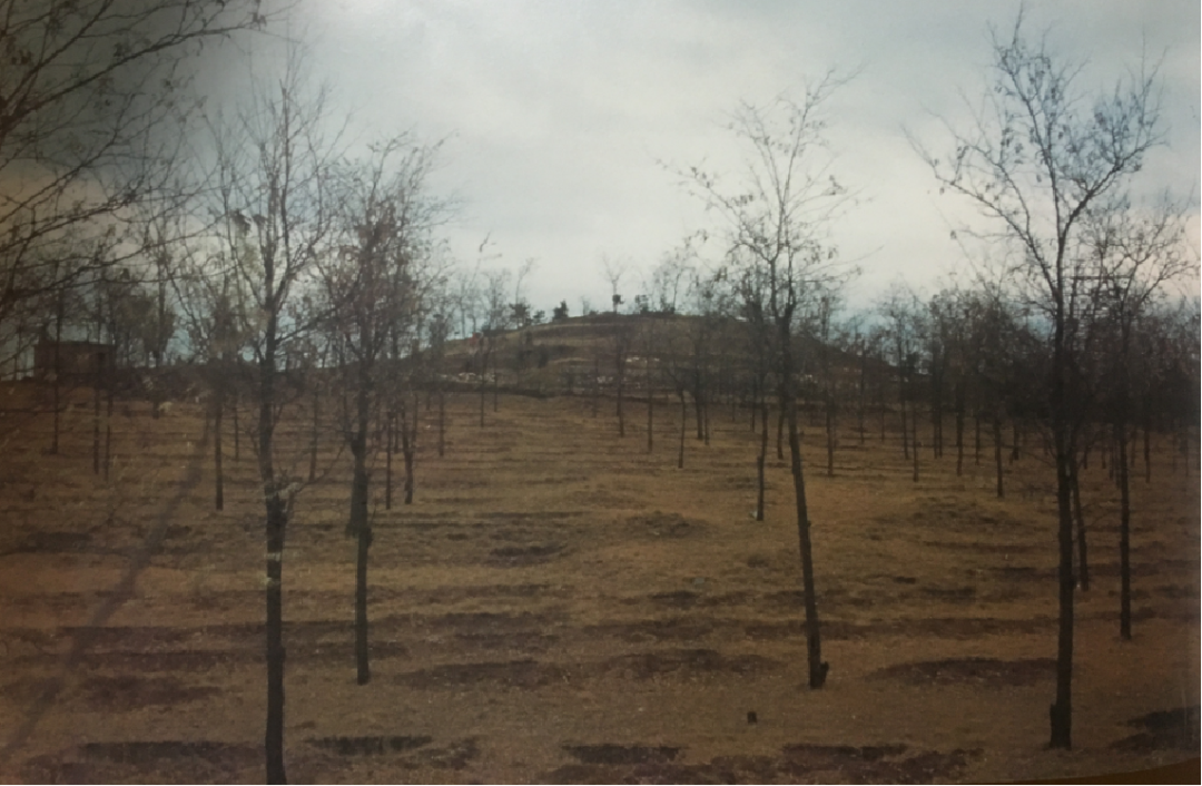 发现的规模最大的一座单体建筑。该建筑址中央部分为土丘,直径40米,从山岗基岩面到现存土丘顶,残