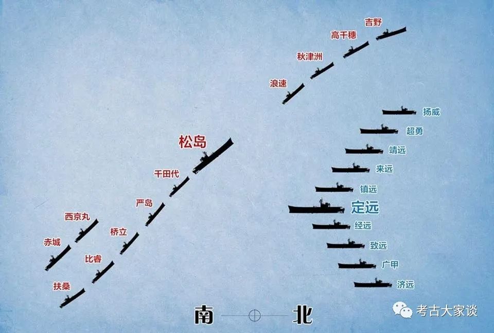 黄海海战(大东沟海战)之我北洋舰队迎敌阵列及致远舰位置(周春水先生提供)