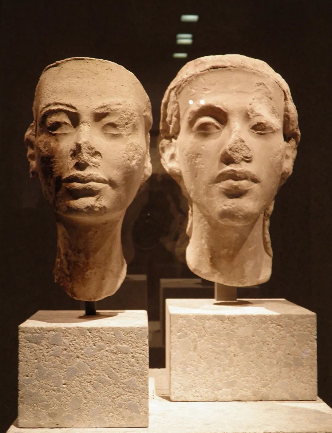1912年12月上旬,一个德国考古学家在埃及阿玛尔纳(Amarna)的废墟进行挖掘时,发现了一座毁弃的房子和一个工作室综合体(studio complex)。根据院子里一块象牙马眼罩(ivory horse blinker)上的名字和职称,人们称此处的主人为雕塑家图特摩斯(Thutmose,也可以拼做Thutmosis、Djhutmose和Thutmes,约活跃于公元前1350年)。举世闻名的纳芙蒂蒂像就是发掘自图特摩斯的工作室。纳芙蒂蒂(Nefertiti),c. 1360 BC,彩绘石灰岩(painted limestone),约48cm高。柏林埃及博物馆与纸莎草收藏(Ägyptisches Museum und Papyrussammlung, Berlin)。我们在讲哈特谢普苏的时候,曾经提到过数位叫图特摩斯的法老。这个名字本身的意思是“托特诞生了(Thoth is born)”,而托特是古埃及书写、魔法、智慧与月神。托特(Thoth, 古埃及书写、魔法、智慧与月神)神像,c. 1400 BC,凹浮雕,花岗岩,埃及卢克索(Luxor)。图特摩斯作为阿玛尔纳时期“法老的最爱与杰作大师”(The King’s Favorite and Master of Works),其名字却仍然出自多神崇拜传统,这也是为什么我们在分析阿肯那顿的宗教政策时会对他的阿吞崇拜是否为绝对的一神教有所保留的原因之一。阿肯那顿肖像(Akhenaten)习作,柏林埃及博物馆与纸莎草收藏(Ägyptisches Museum und Papyrussammlung, Berlin)。图特摩斯一般被认为是阿肯那顿统治后期的官方宫廷雕塑家(official court sculptor),除了著名的纳芙蒂蒂胸像,还有约22件人物石膏模型在他的工作室中被发现。这其中有的是完整的头像,有的仅有面部。包括阿肯那顿在内的8位皇室成员出现在这些作品中,剩下的是一些不知名的人物,很有可能是阿玛尔纳当时的居民。阿肯那顿与纳芙蒂蒂,柏林埃及博物馆与纸莎草收藏(Ägyptisches Museum und Papyrussammlung, Berlin)。尤其珍贵的是,工作室中有几件作品表现了古埃及年长的贵族妇女的真实形象。在古埃及习惯将女性理想化、年轻化、苗条化的艺术世界里,这种写实主义头像正是阿玛尔纳艺术昙花一现的巨大意义。年长贵妇像,柏林埃及博物馆与纸莎草收藏(Ägyptisches Museum und Papyrussammlung, Berlin)。在这个三千多年前的艺术家工作室里,一个雕塑者在安静地揣摩着上至法老下至平民的各种人物。纳芙蒂蒂(Nefertiti)花岗岩(granite)雕像头部,柏林埃及博物馆与纸莎草收藏(Ägyptisches Museum und Papyrussammlung, Berlin)。我们现在看到的多半不是他作品的完成态,却有可能在无意间触摸到了某种历史的真实。纳芙蒂蒂(Nefertiti)肖像习作,柏林埃及博物馆与纸莎草收藏(Ägyptisches Museum und Papyrussammlung, Berlin)。