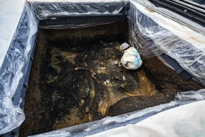 大约三千年前,神秘的古蜀人祭天敬神,象牙是最珍贵的祭品之一。三星堆博物馆展出的国宝级文物青铜大立人,很多专家推测他手中握的祭品很有可能就是象牙。▲ 在四川德阳广汉市三星堆遗址三号“祭祀坑”,考古人员将封装好的象牙转运(5月12日摄)。新华社记者王曦摄 5月28日,三星堆遗址七号“祭祀坑”发掘现场,四川大学考古文博学院的黎海超教授非常兴奋,经过几个月的发掘,七号“祭祀坑”终于到了器物层。仅1米长、0.6米宽、10厘米深的长方形解剖坑里,已经暴露出10根可分辨个体的象牙。▲ 考古人员在四川德阳广汉市三星堆遗址四号“祭祀坑”内清理象牙(5月14日摄)。新华社记者王曦摄 黎海超正带着学生们,用竹签一点点地把象牙周边的泥土清理出来。这个过程必须非常细致,因为整根象牙附近,还有不少被烧过的象牙碎片。考古学家小心地把这些碎片收集,以便后期进行实验室分析。之前5号“祭祀坑”出土的象牙器残片上,考古学家们还发现了弦纹、云雷纹、羽翅纹等规整精细的纹饰,部分纹饰线条宽度不足50微米。 据四川省文物考古研究院三星堆考古研究所所长冉宏林介绍,目前已发现的三星堆“祭祀坑”里,二号、三号、四号、七号“祭祀坑”暴露出的第一层文物都是象牙。 “我们推断古蜀人在填埋祭祀物品的时候,有按照一定的顺序,最上层一般是象牙。”冉宏林说。 三星堆“祭祀坑”的许多器物可以看到燔烧的痕迹,是引人注目的祭祀场景表达。考古学家推测古蜀人使用了一种“燎祭”方式,即将祭品燔烧后填埋,象牙也不例外。 如果要提取别的器物,必须先提取象牙。最近两、三个月,考古学家主要对三号和四号“祭祀坑”的象牙进行提取,截至5月底基本完成,总共提取了大约一百根成型的象牙。 记者在现场看到,已经提取出来的象牙被薄膜和绷带包裹得严严实实,每一根都单独放在一个木箱子里运往实验室。 与四川省文物考古研究院一起负责三号“祭祀坑”发掘的上海大学讲师徐斐宏告诉记者,三号“祭祀坑”已提取约60根象牙,最长的象牙1.5米,是目前为止提取象牙最多的“祭祀坑”。三号“祭祀坑”的象牙与大量青铜器叠压在一起,有的甚至染上了蓝绿色的铜锈,即使过了数千年也能感受到庄重盛大的远古祭祀氛围;