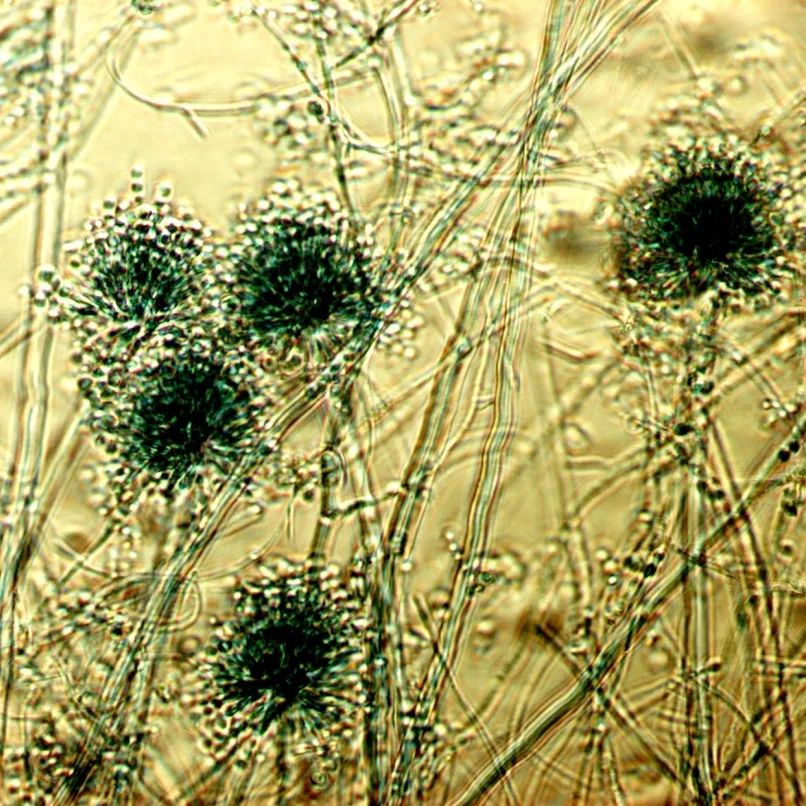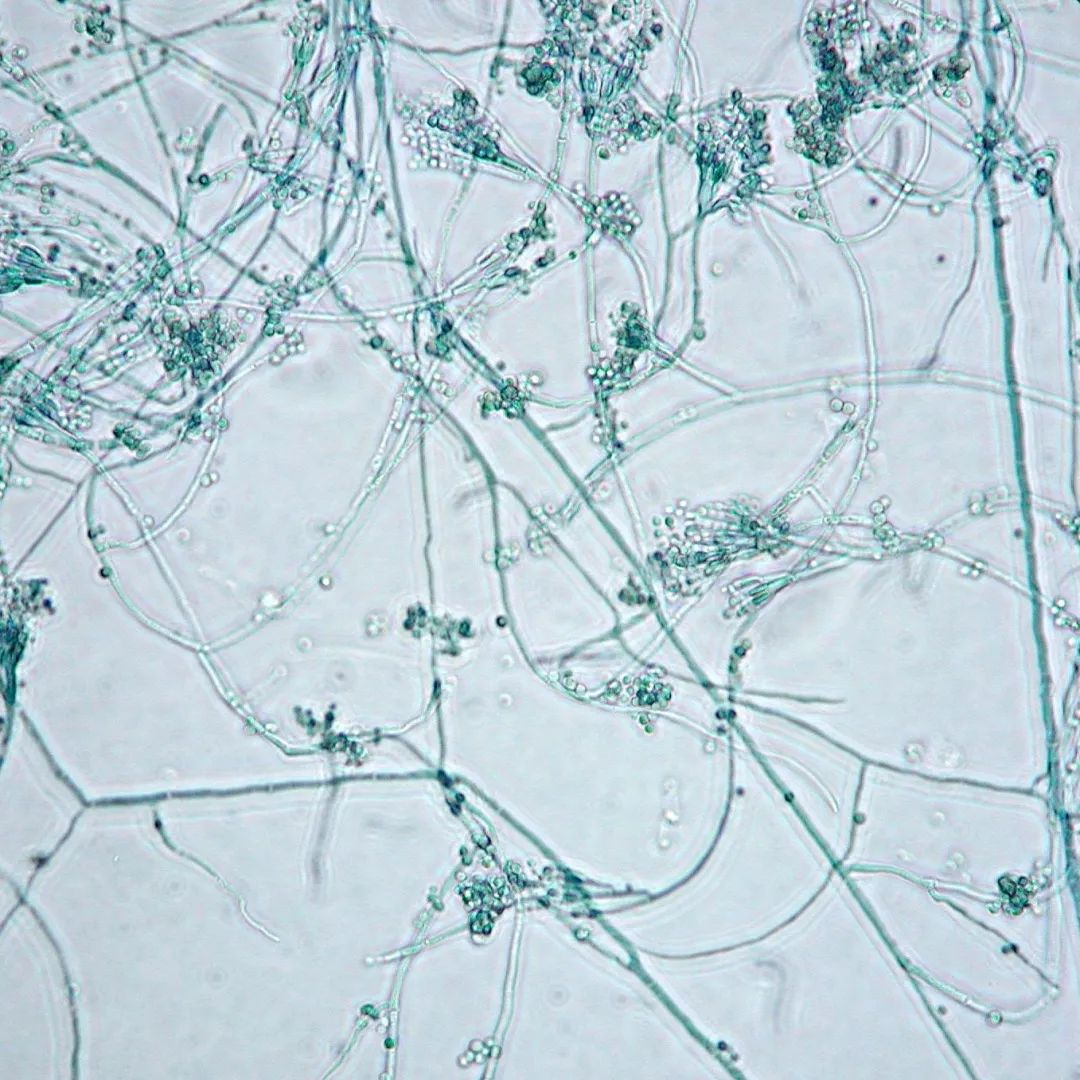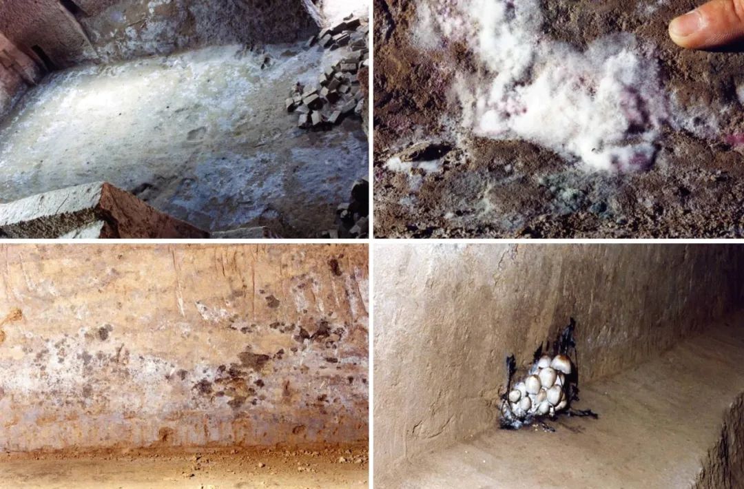 在秦俑坑遗址微生物(主要为霉菌)的活动情况调查中,共分离鉴定出48种霉菌种类,数理统计表明:青霉(Penicillum)、曲霉(Aspergillus)、根霉(Rhizopus)、木霉(Trichaderma)、头孢霉(Cephalosporium)占整个采样分离菌种的70%以上,无论从数量、或种类上,都是俑坑内的主要霉菌种群。