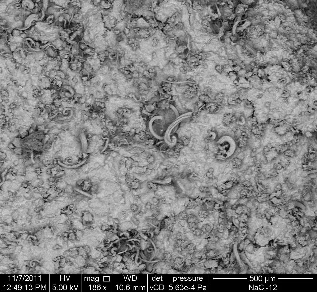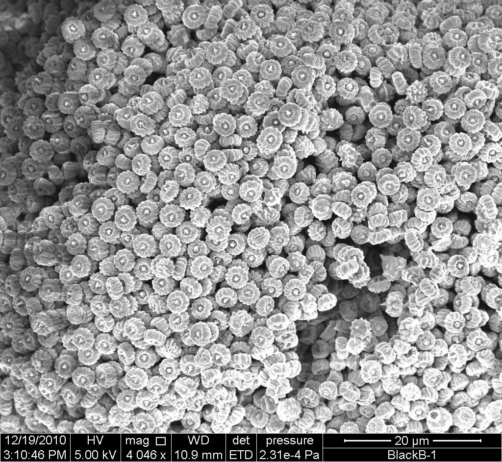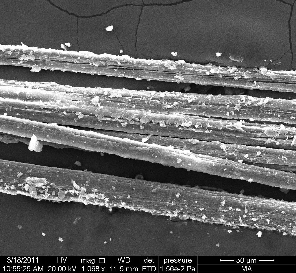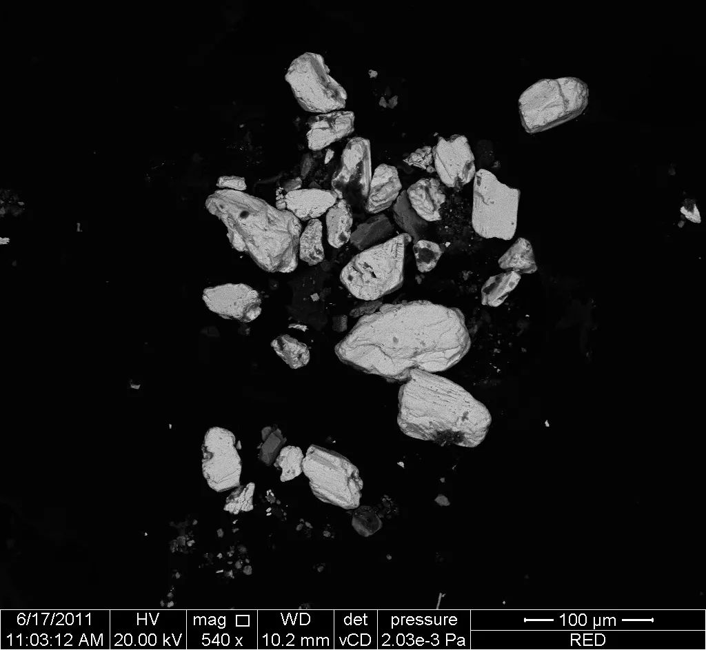 在文物分析研究中,这一技术的优势在于样品需求量小,制备简单。一般情况下,分析要求样品表面导电,但对于不导电样品或导电性差的样品,可以进行喷镀,或利用低电压、低真空、环境扫描等成像技术进行观察分析。