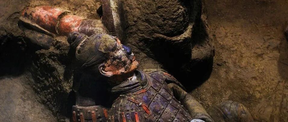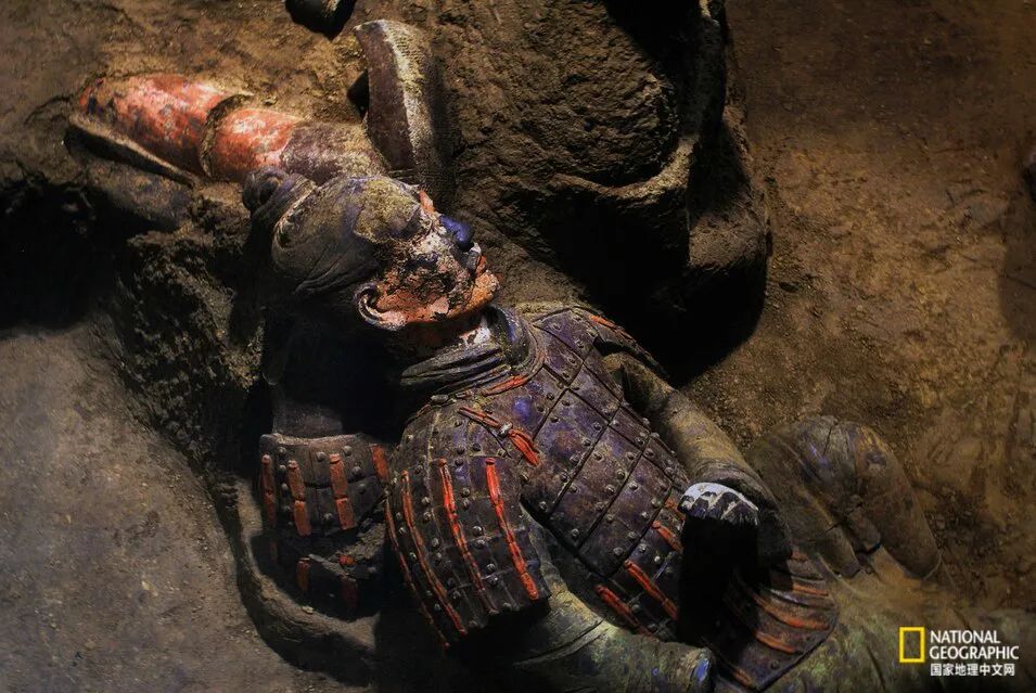 整个兵俑被涂上一层漆,以保护塑像和武器。