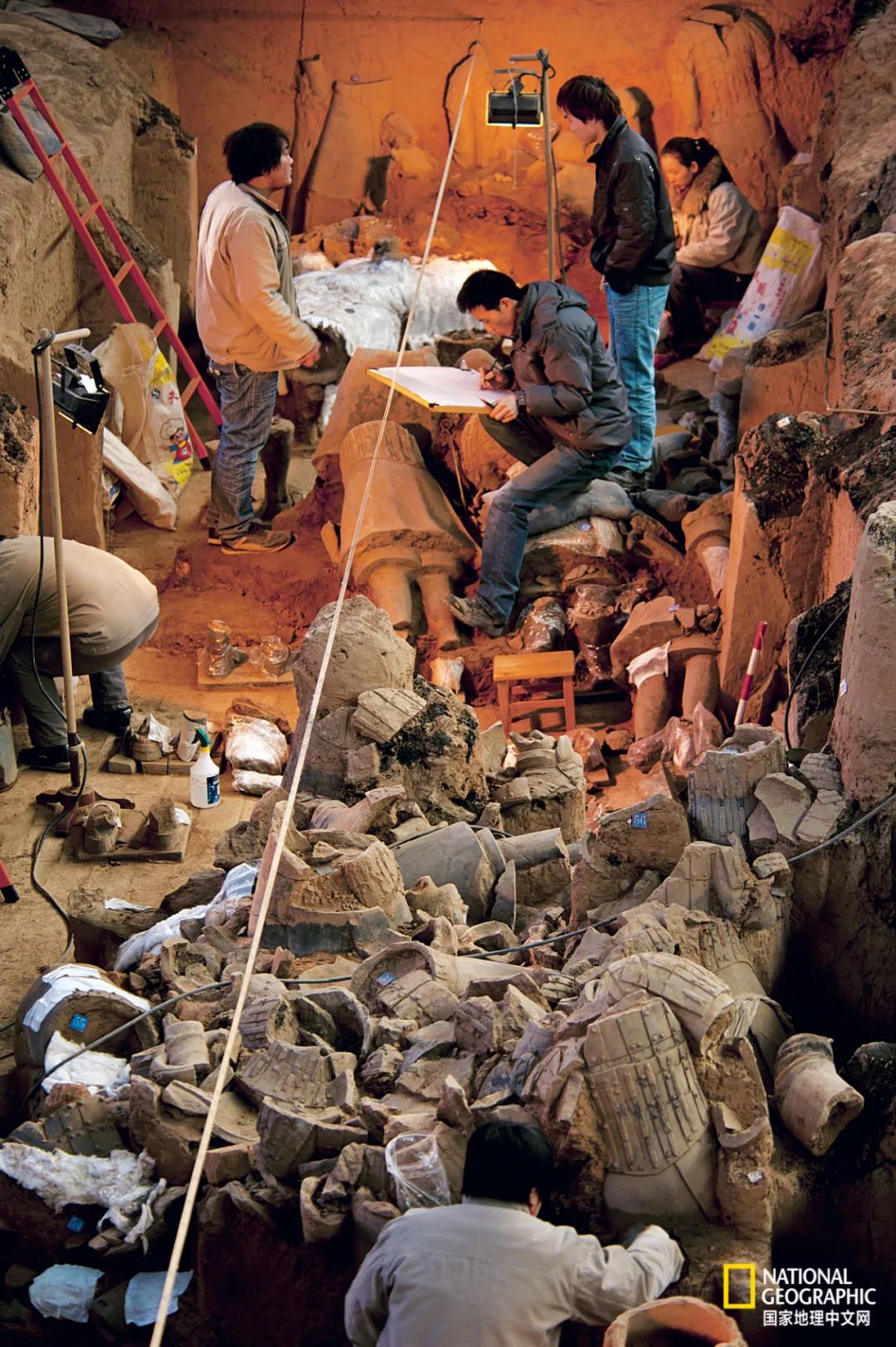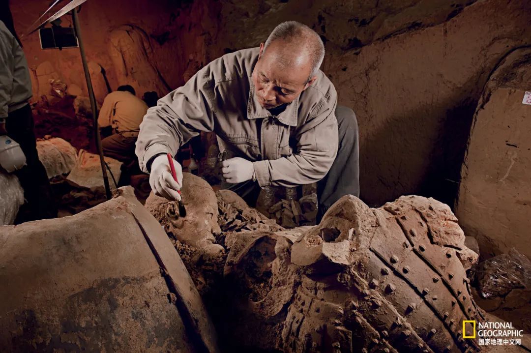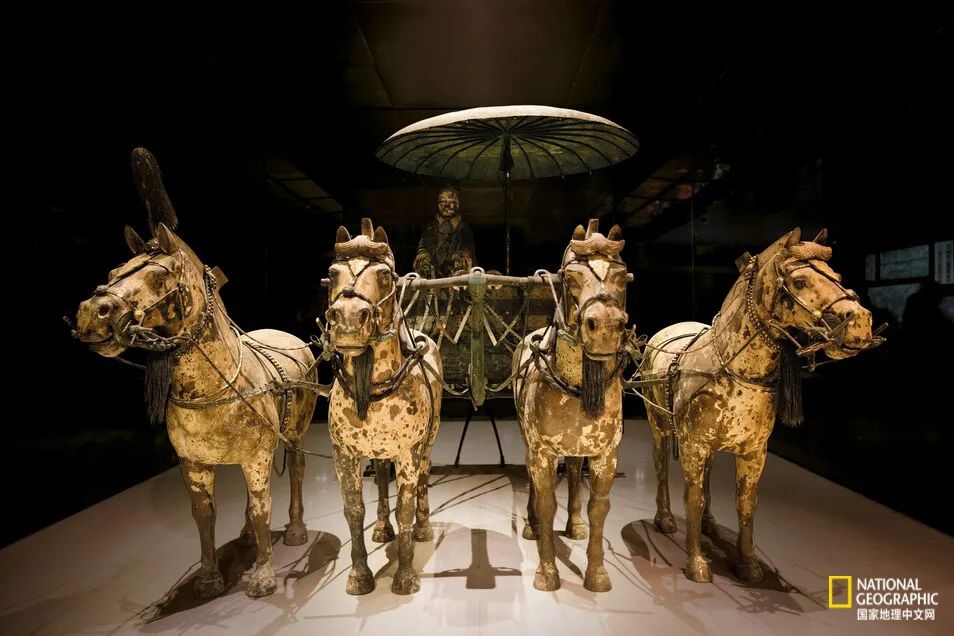 在之后的几个月里,中国考古学家在这里有了惊人发现——宁静果园下,屹立着一支“人造军队”:几千个真人大小的兵俑、几百个马俑,还有数不胜数的青铜马车和武器。