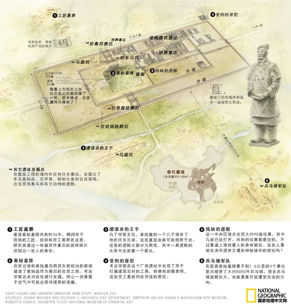 这些俑像出土的地方在秦始皇陵以东不到1.6公里的地方。秦始皇帝陵建于公元前3世纪,整个建筑群不仅包括兵马俑坑,还有真人坟墓,被认为是世界规模最大的陵墓建筑群,占地面积约60平方公里。