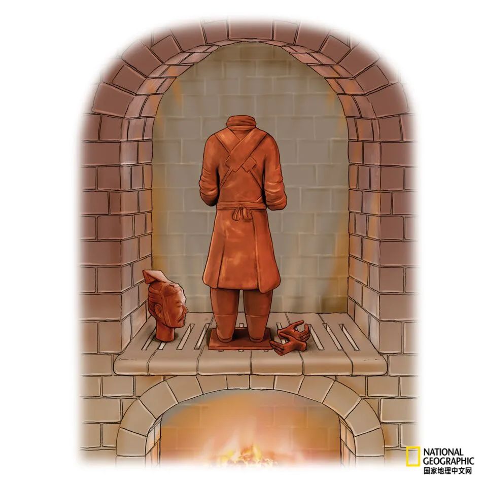 兵俑的身体和头部在大窑中分开烧制。这一过程可能在中国这个地区常见的黄土窑里完成。