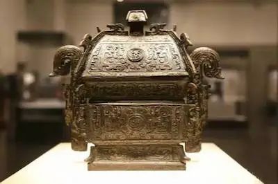 彝,大型盛酒器,器身多为方形,平底有盖,盛行于商代和西周早期。彝通常作为礼器以其显赫的地位和精美的造型著称,常用语古代宗庙常用的祭器,为酒器中所谓的“庙堂之器”,与鼎合称“鼎彝”。
