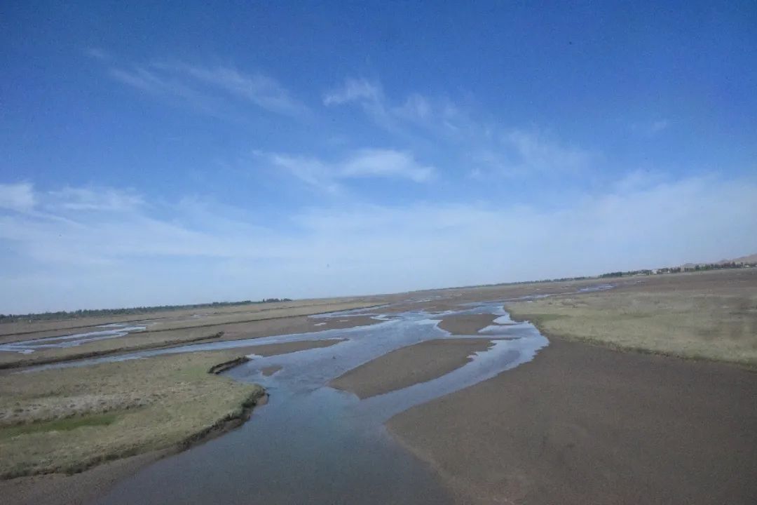5月28日,早晨8点,我们从酒泉城统一出发,一路向北,沿着高速,行进在戈壁大漠中,目的地是赶往肩水金关,150公里左右。10点40,到达黑河大桥,蜿蜒的黑河宛如飘带从天边飘来。
