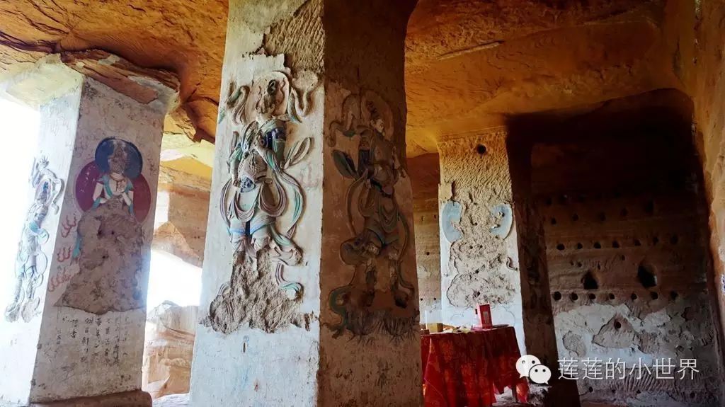 泾河两岸悬崖峭壁上数百个大大小小的石窟里,香烟缭绕,妙音不绝,