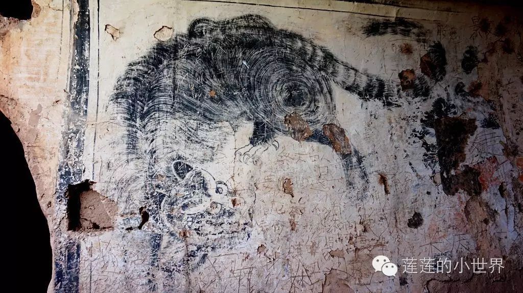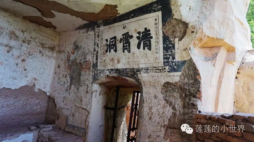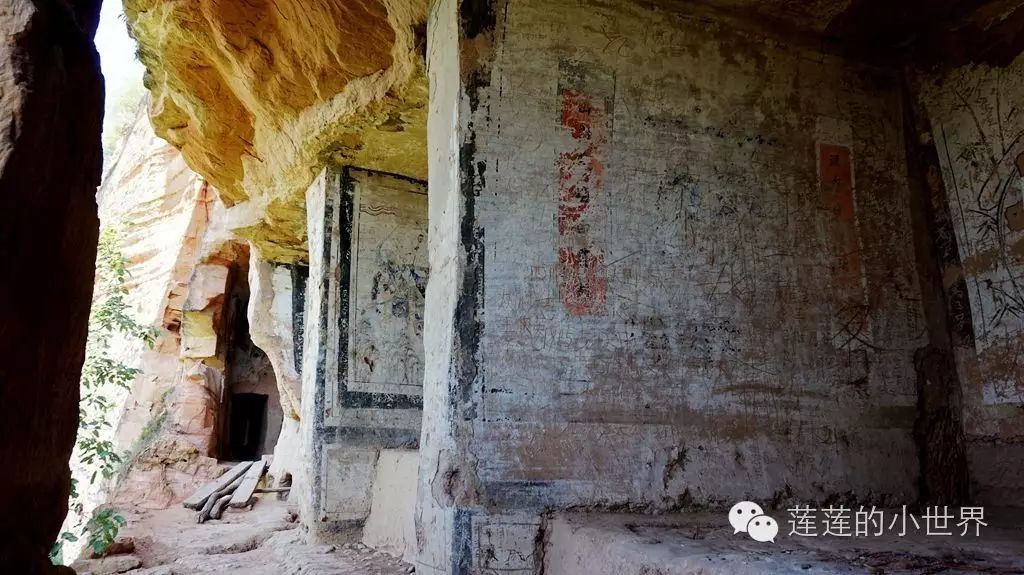 在石窟入口处,有清朝光绪年间重修的记载。其余洞窟里,有的无造像,有的残存清代和民国时期的墨色壁画、诗文、题记等。