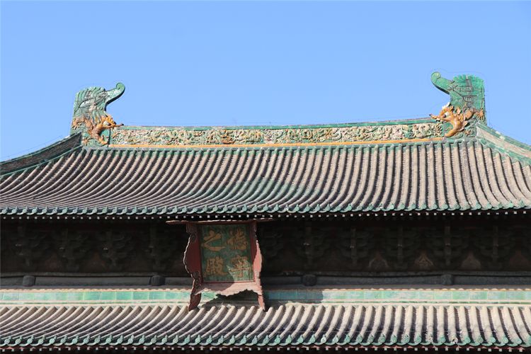 午饭过后,我们又达全国重点文保单位——北岳庙。五岳祭祀,由来已久,相传尧舜时期即封禅五岳,汉宣帝神爵元年(公元前61年),祭祀五岳四渎成为定制。北岳庙始建于南北朝时期,为多代帝王祭祀古北岳恒山(今保定唐县大茂山)之地。在这里,姚庆老师从实物入手,为大家带来了形象且精彩的古建知识讲解,使同学们进一步了解了古建筑构件以及古建筑组成。
