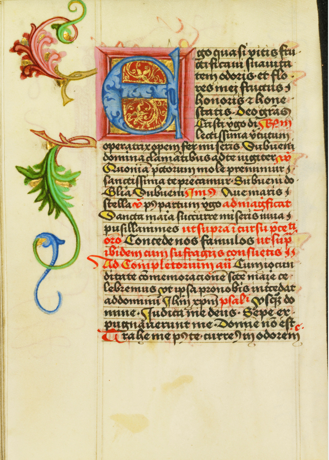 在制作泥金手写本的过程中,通常首先抄写内文。按照一定的尺寸裁好羊皮纸后,再经过总体的页面规划设计(首字母、边框等),将纸页用尖木棍固定,抄写者就用鹅毛笔或者苇杆笔沾着墨水开始抄写了。