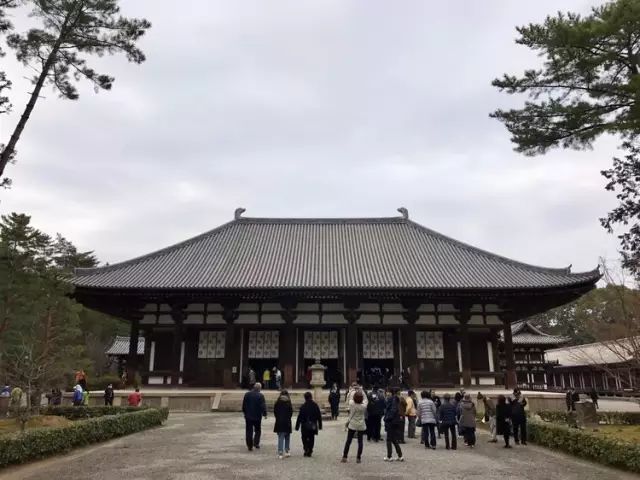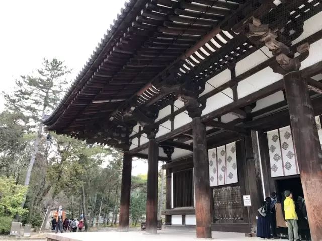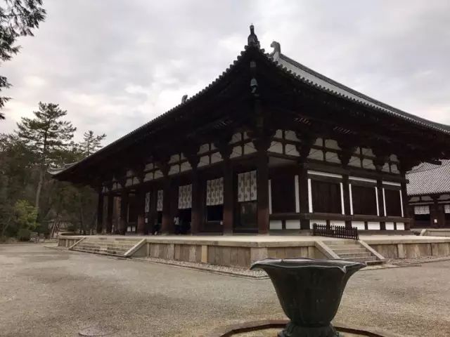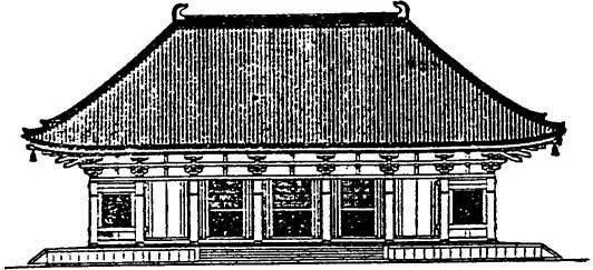再回到唐招提寺的金殿,可以清晰的看到雖然金殿進深四間,但是第一間被建造為廊道,後三進隔成了大殿。有一說唐代的寺廟大殿建築本就是如此。我對此存疑。因為這樣的佈局明顯減少了殿內的空間,對事事最求高大上的唐帝國來說。顯然是不怎麼合理的。而且從後代金遼的减柱法形式的出現,可見當時人們對大殿室內空間的追求是相當大的。當技術條件成熟的情况下。顯然不會無端浪費任何高大上的機會。