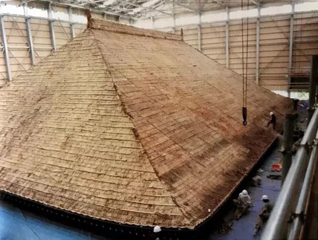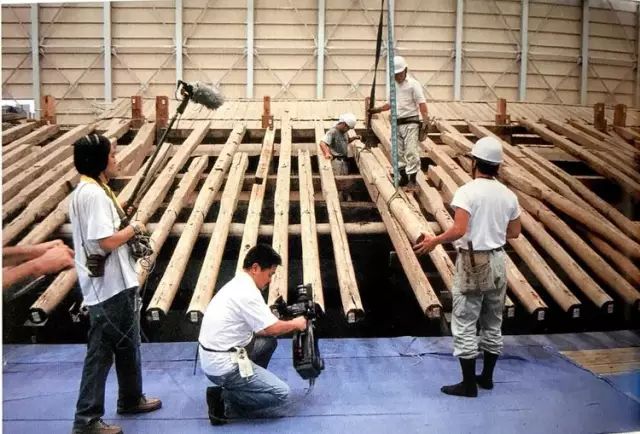 1998年,平成金堂解體修理時候的照片。可以看到瓦片去掉以後,下層是杉木皮鋪設起來的屋頂。