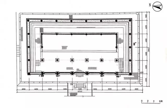 佛光寺東大殿的立柱分佈圖。大體可以看出兩個建築基本上是相同的。
