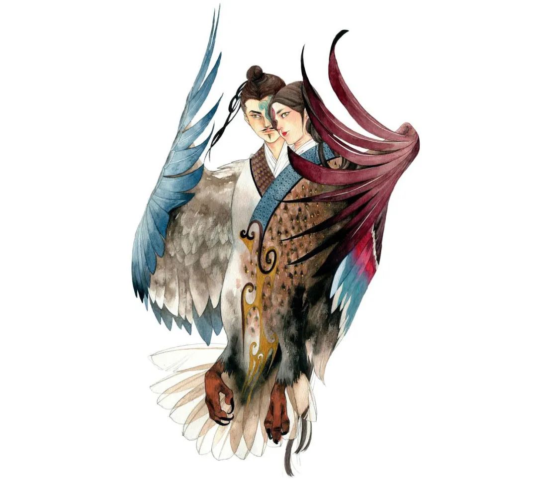 可是在世俗文化中,共命之鸟原本的寓意单纯被演绎成赞誉的意思了。唐代杜甫《岳麓山道林二寺行》中有“莲花交响共命鸟,金膀双回三足乌。”清代唐孙华《追挽张烈妇》中有“愿为共命鸟,永托连理枝。”
