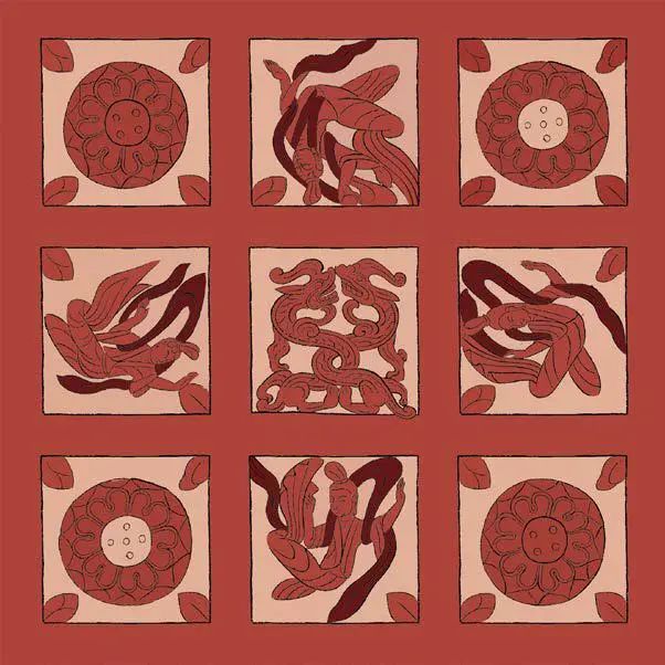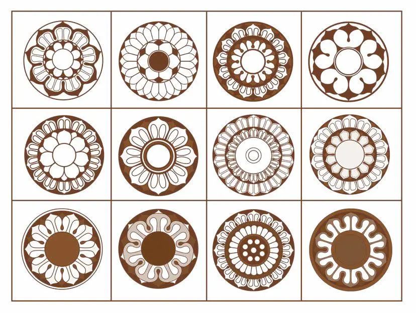 云冈图案的本源是佛教文化和艺术。花卉、植物、动物等图案成为这一时期的主流装饰题材,如典型的佛教纹样——莲花纹、忍冬纹等,在初期佛教美术中就被广泛使用 ,并贯穿云冈早、中、晚三期。云冈石窟装饰图案,线条优美、大气凝重,构图及线条疏密有致,具有浓郁的装饰意蕴、凸显出北魏时期的图案特色和抒情写意的审美品质。