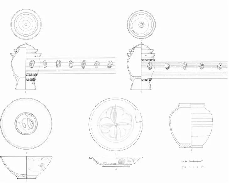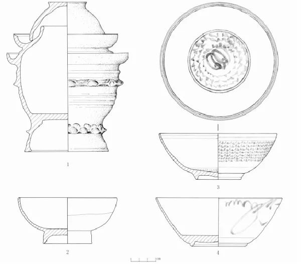 1.陶碗 2、4、5.陶坛 3.陶钵