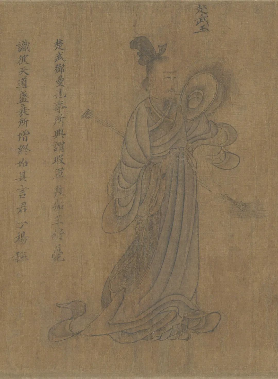 一、“邓曼”故事。邓曼是楚武王的夫人。楚王令伐隋,邓曼劝说:“日中必移,盈则荡,天之道也。”图中好战的楚王执剑欲行,掀动的衣袖折射出他不平静的内心。