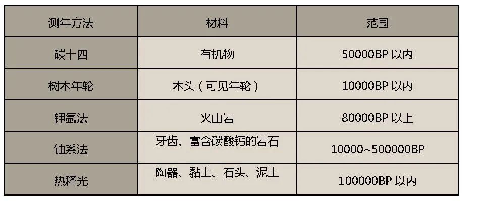 考古学常用测年方法列表