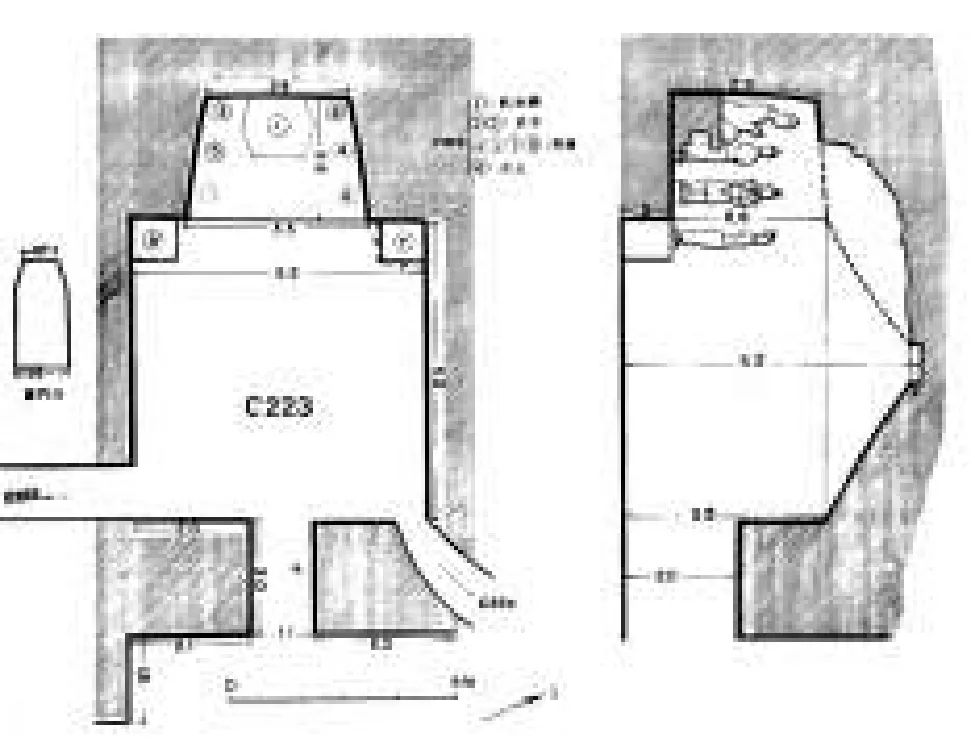 图2第445窟平面及剖面图(采自石璋如《莫高窟形(二)》第145页,图一八五)