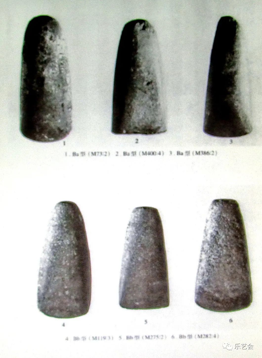毫无疑问中国的石斧和石钺在新石器时代就已存在。与西亚一样权杖是由工具演变发展而成的,中国的斧钺也是从石斧发展出来的。世界石斧从175万前后非洲澳杜威峡谷出土的阿舍利手斧发展而来。到70万年前后印度河地区巴基斯坦出土的阿舍利手斧巳打制得十分精美。一万年前后未次冰期结束气候转暖,人类普遍进入新石器时代,全世界普遍出现和使用磨制石器和磨制石斧。15000年前后西亚纳吐夫文化巳经开始出现磨制石器,西亚耶莫文化已出土非常成熟的全磨光石斧。石斧磨制非常费工费时,所以最初只是磨制刃口,后来才逐步发展成整体磨光的石斧。中国南方因为稻作农业非常早,社会生产力发展的经济积累使得南方长江流域出现的磨光石斧比较早。考古证据显示我国长江中下游因气候转暖海平面抬髙造成海侵,沿海考古学文化的人群受海平面抬升、海岸线西进造成住地被淹和长江中游受洪水影响,被迫沿丘陵髙地和第二阶梯髙地北迁河南平顶山地区的舞阳贾湖地区。河南舞阳贾湖文化出土的水稻、干栏房屋明显带有南方文化的性质。其陶器也是南方发明的。其三足陶器是东夷鼎式陶器的源头;而使用龟甲占卜是东夷文化的宗教传统,宗教是一个民族神灵崇拜的标志,因含有祖先崇拜不会轻易改变。所以东夷民族崇鸟,使用龟甲占卜的习俗与西北民族使用牛羊猪肩胛骨占卜的骨卜习俗不同,在图腾崇拜中的祖先祟拜形像也不相同。这也反映了东部中国和西部中国各民族的族属不同。这是以前国内研究族源时被长期疏忽的重要信息因素。图7、中国最早的磨光石斧出现在9000年前后的河南舞阳贾湖文化。贾湖文化位置在中国第二阶梯髙地,从其出土的南方器物可证其是从南方长江中下游地区受水灾被迫北迁的东夷民族的文化。贾湖文化人群影响了东北部的裴李岗、磁山和大汶口等新石器时代早期文化,还向西推进到甘肃大地湾文化并影响仰韶文化等周边文化,在中国新石器文化中具有极为重要的地位。(图片选自河南文物考古研究所编著、科学出版社1999年出版《舞阳贾湖》)
