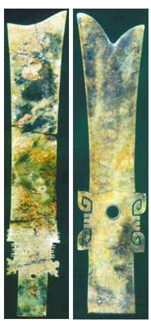 中原地区的商王朝不制作牙璋,而是将牙璋改制为其他器物使用。如殷墟妇好墓出土的由牙璋改制的玉铲形器。