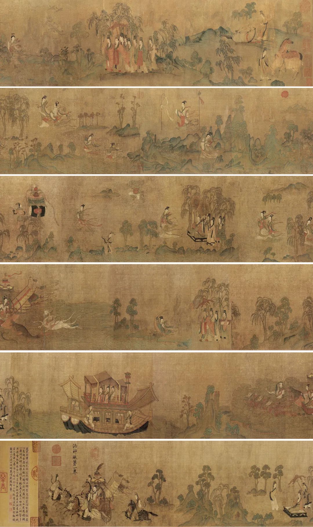 作为十大传世名画之一,《洛神赋图》开创了中国传统绘画长卷的先河,也标志着中国早期绘画从政教的附属地位和礼仪的实用功能走向了审美自觉。