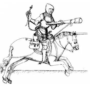 法国巴黎国家图书馆藏 1450 年拉丁文手稿中所绘的骑兵用手铳