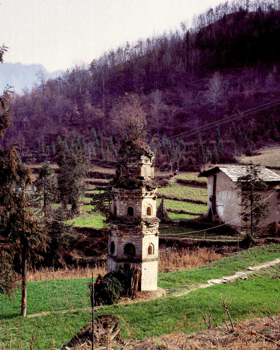 双塔寺塔。白河県双河鎮双宝村六組に位置し、明代に建造され、六稜四級 楼閣式ソリツド煉瓦塔である。この寺に元は塔が二座あつたが、現在一座だ け残り、残り高さは9.5メ一トルである。