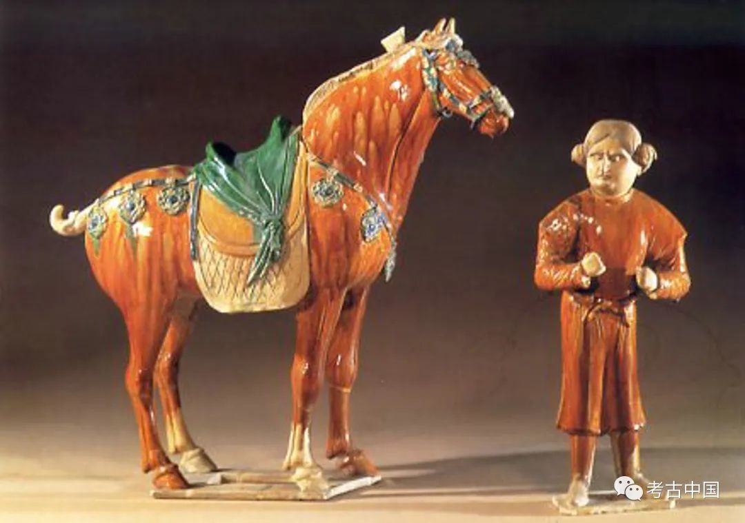 ▲ 唐鲜于庭诲墓 三彩马与牵马俑