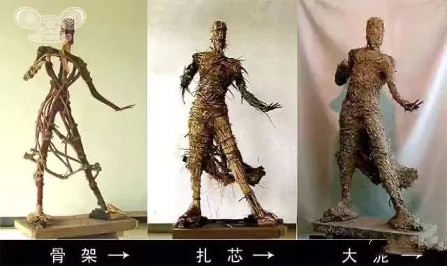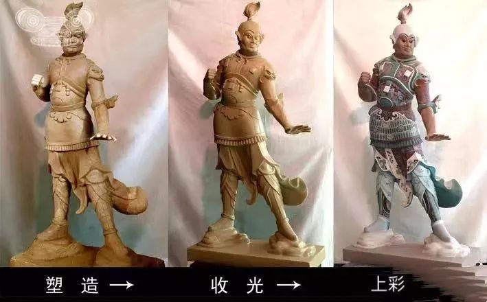 方法是这样的:根据想要塑造的人物或动物基本外型比例,先立一木头骨架,然后分三层用泥,塑造形体和衣纹。