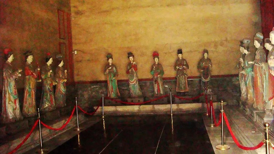 严格区分,四十二尊中有宦官五尊,着男服的女官四尊。其中有几尊看来很像是后代补加的(因为看着就比其他原作大了一号)。总的尺寸都和真人的大小相差无几。这些侍从都各有专职、身份,性格也各不相同。举手投足,顾盼生姿,世态人情,纤毫毕现,几乎可以给她们每人立一个小传。