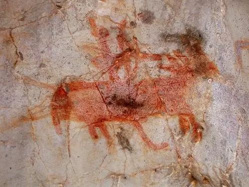 牦牛图像 最具代表性,出现频率最高的图像 青藏高原岩画90%以上的图像都是动物,在所有动物中,出现次数最多的是牦牛,其次是鹿、羊、马、鹰、狗。 牦牛图像可以说是西藏岩画最具代表性的图像,也是出现频率最高的图像。 据粗略统计,凿刻类岩画占西藏岩画整体的60%以上,目前进入数据库的凿刻类岩画点有30多个。 在这些岩画点里,完全没有出现牦牛图像的只有2处。 一处是藏北索县的军雄岩画点,该岩画点只有一幅画面,画面是一只展翅大鸟; 另一处是藏西日土县的扎龙诺玛岩画点,该岩画也只有一幅画面,是几头奔跑着的鹿。 除了这2处岩画点外,其余的凿刻岩画点都能见到牦牛的身影,且牦牛占主导地位的岩画就达22处。 牦牛大量出现于西藏岩画中,说明牦牛与早期活跃于羌塘草原的古代族群间有着十分密切的关系,无论是作画者出于祭祀巫术的目的,还是出于写实记录的目的,有一点是可以肯定的,牦牛是羌塘草原上最普遍、与人关系最为密切的动物。 鹿图像 高原岩画的另外一条发展线索 鹿也是高原岩画中出现频率较高、分布较广、在艺术表现上具有特色的动物。 如今的藏北高原上已经很难见到鹿了,鹿似乎只出现于西藏的早期岩画里,这可能是鹿图像之所以引起人们关注的一个原因。 另外一个原因就是它独特的艺术表现风格,我们不难发现,鹿的表现风格颇有富于华丽的装饰性。 这类鹿所呈现出来的艺术气质与高原土著艺术风格相距甚远,它们似乎让我们看到了西藏岩画中某种“另类”的艺术精神。 鹿图像的分布不像牦牛图像那样均匀,鹿图像有明显的区域性,它主要集中在西藏的西部,而且大都局限于日土县境内,日土县发现的岩画点有20多个,其中11个岩画出现了鹿图像,比例大致是1:2。 西部是鹿图像艺术表现样式最为丰富的地区,从地理分布看,越往西,鹿的图像越是鲜明,风格也越是多样化,而越往北或者往南情况恰恰相反。 据相关资料记载,在高原岩画的动物世界里,牦牛与鹿这两种图像各自代表着高原岩画的不同文化特质。 鹿图像似乎更多地向我们展示了高原岩画的另外一条发展线索,最早出现于藏西地区标准的鹿图像风格,其艺术气质与高原岩画稚拙古朴的艺术风格迥然相异,它细致的轮廓勾线方式和富于装饰性的表现手法,值得进一步探讨。 马图像 通常只作为高原人的坐骑出现 马也是岩画中经常出现的动物,若按出现的频率进行统计,马出现的频率高于鹿。 马大量出现于西藏岩画,但却很少作为独立的图案出现,它通常只作为高原人的坐骑出现,换言之,只要出现马,上面一定有骑马者。 马的出现或是作为猎手追杀猎物的坐骑,或是作为战斗中武士的坐骑。 在西藏的狩猎岩画里总能看到猎犬的身影,不过,猎犬与人毕竟有距离,它与人的密切程度显然比不上马。 在西藏岩画里,人与马已融为一体,它代表着一个图像,而不是一种组合。 早期岩画往往以狩猎野牦牛或单纯表现牦牛的画面为主,从狩猎方式看,青海省的野牦牛沟岩画点几乎不见骑猎野牦牛的场面,猎手呈徒步持弓箭的图像,在猎物周围往往有猎犬做追赶状,天上还有盘旋的鹰。 中期狩猎岩画内容就更加丰富了,藏西阿里地区改则县先遣乡的日杰岩画点,日土县热邦区的果拉岩画点,藏北文部的夏仓岩画点的狩猎内容,可以看成是略晚于藏西阿垄沟、鲁日朗卡等狩猎岩画的一批代表性岩画。 这一时期的狩猎图中,基本不见徒步狩猎,骑猎成为唯一的狩猎方式,而且大多是围猎的场面,只有1例表现了一位猎手骑马奋勇地追赶着野牦牛的画面。 综上所述可知,岩画从一开始就出现了马和骑者,并且可以说是贯穿始末。 换言之,骑马图像与岩画是同时发生、发展的。最早的岩画里虽然较少出现骑猎的图像,但骑马者却并不少见;藏北加林山岩画徒步猎人虽占主导地位,但骑猎也占有一定的比例;到了西部的早期岩画,骑猎所占的比重则相当高。 本期编辑:秦盼 李涛