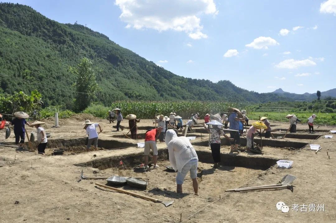 方田坝遗址的文化遗存,与磨刀湾、笔架冲等遗址的西周至春秋时期遗存面貌差异很大,以细绳纹为主体的陶器纹饰、以平底罐、豆等为典型代表的先秦时期遗存,文化面貌独具一格,甚为特殊,时代要略早一些。从陶器方面来看,与临近的黔东北乌江中下游地区的沿河黑獭遗址群,沿河洪渡中锥堡等遗址等商周时期遗存具有较多的相似性,如陶器除了较多的夹砂红褐陶外,还存在一定数量的泥质黑皮陶;陶器器类见有平底器、圈足器等;这些特点均明显可见早期巴蜀文化的影响,反映了峡江地区古文化沿乌江向南渗透进入贵州腹地的情况。从地理位置来看,锦江(大江)的上游源头也紧邻乌江流域,这种地理位置的邻近使得乌江中下游地区的古文化得以沿锦江而向东发展。