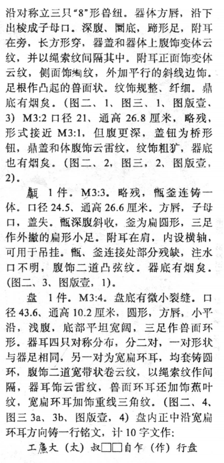 M3:1残。口径31、残高31.5厘米。器盖弧形扁薄,中央置环纽并套铸圆环,边