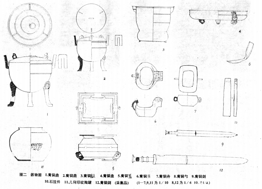 现场,收回文物,并对现场进行了认真的勘察和清理,在堆土地带又找到一些铜器残片和一件几何印纹陶罐。现将资料公布如下。