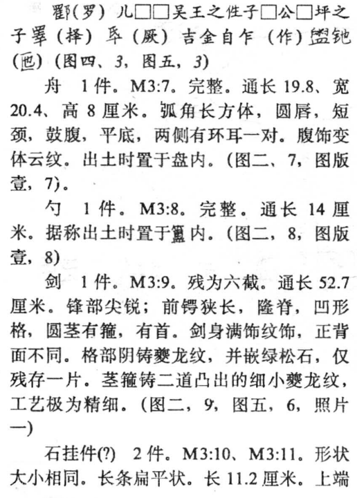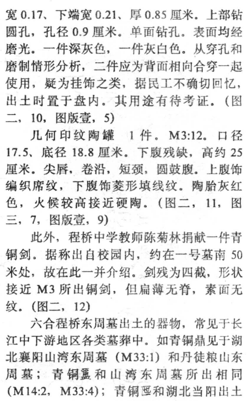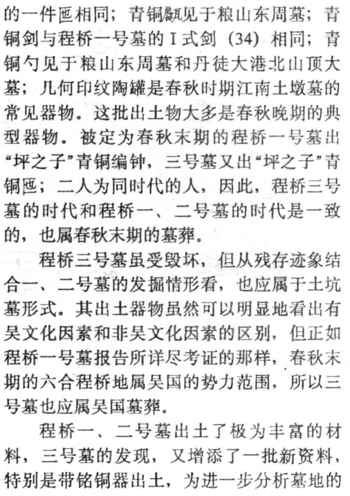 依据现场残迹的分析,对出土物的研究,参考一、二号墓的资料,我们认为这组器物为墓葬的随葬品,因此,该墓定为程桥东周三号墓(M3)。