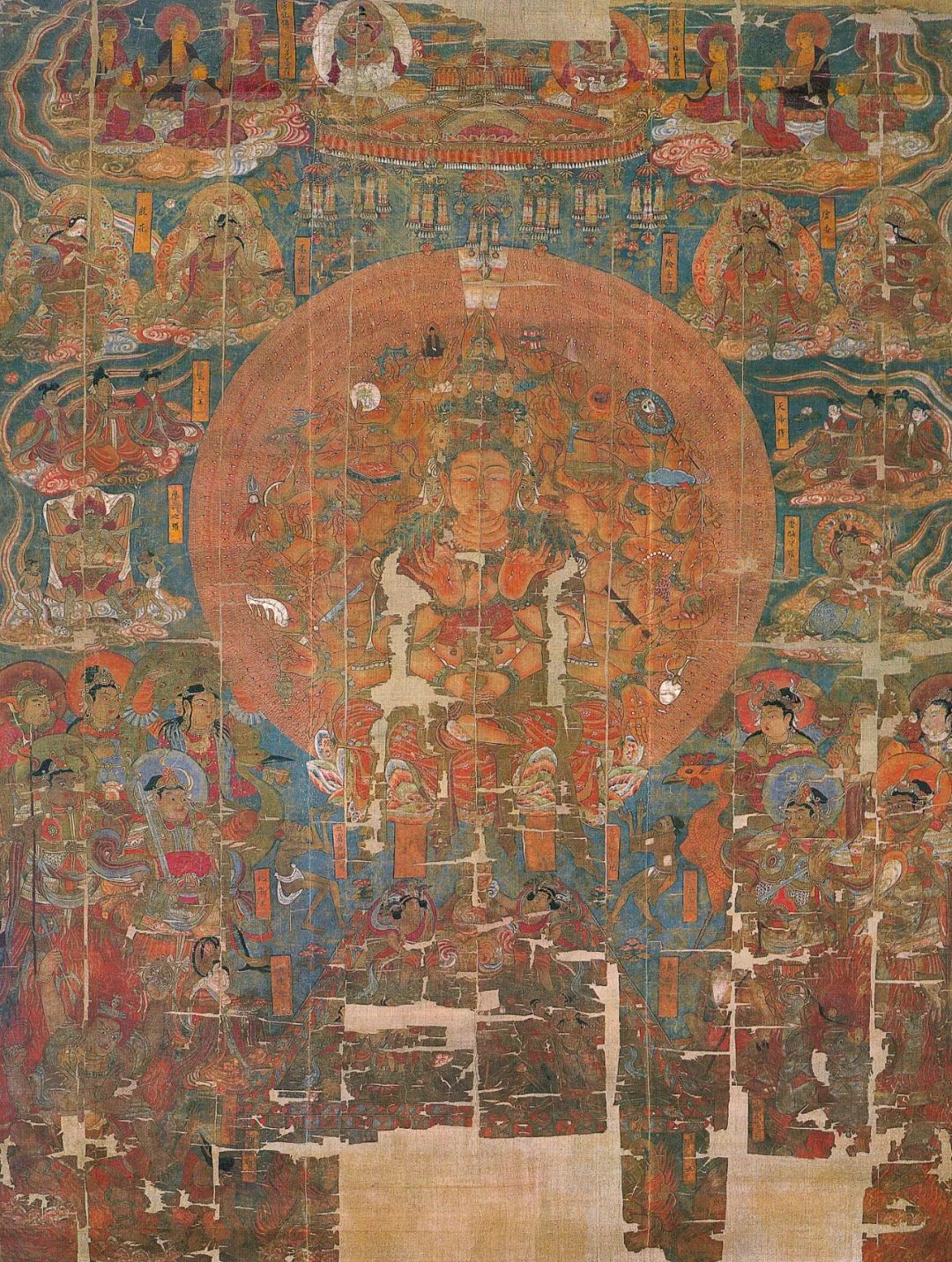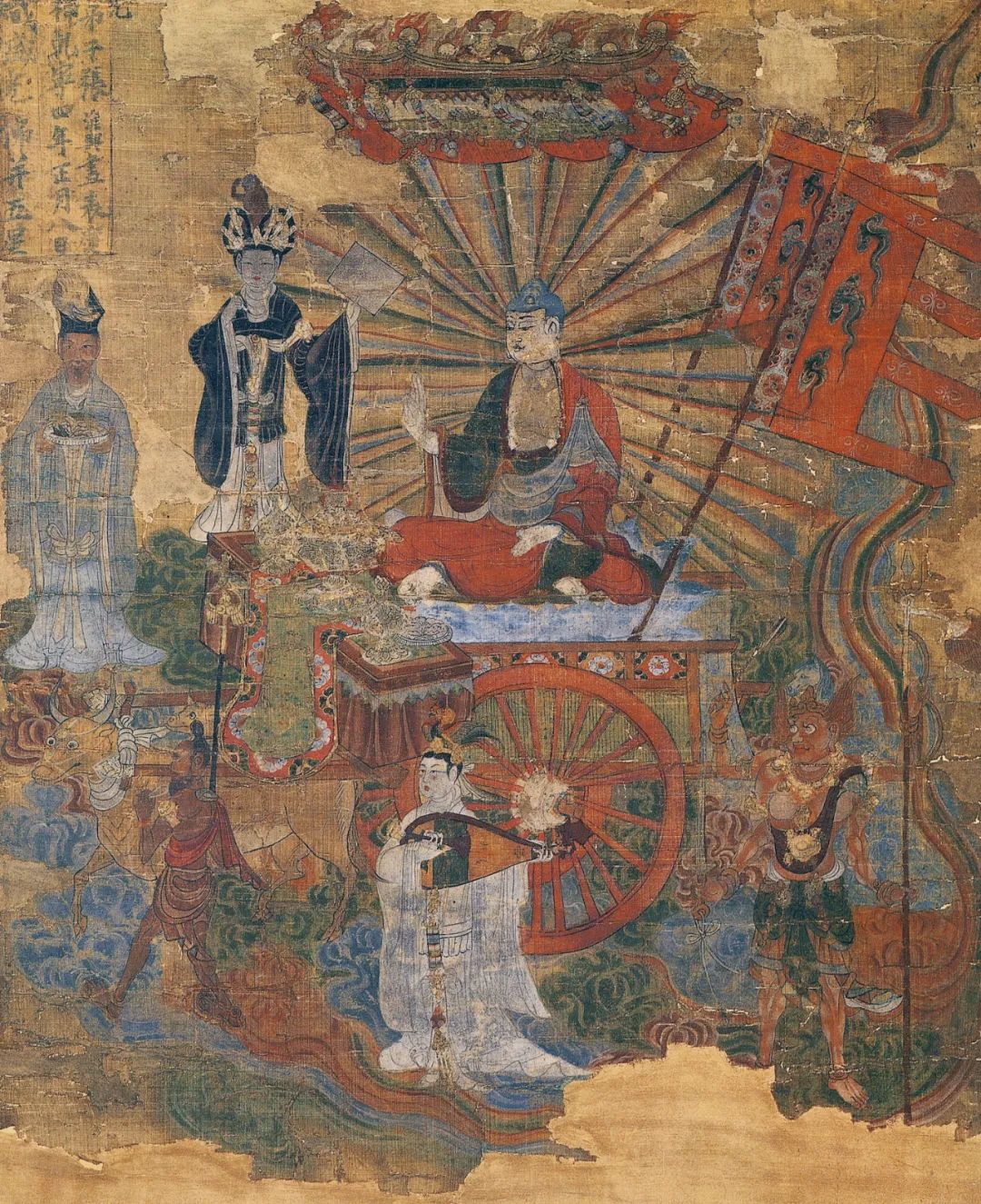 关于《炽盛光佛及五星图》,同样的题材出现在千佛洞Ch.VⅢ洞窟甬道南壁的壁画上,尺幅和场面更为宏大。读者不妨将两者做一对比,定然会对因不同材质而限定的绘制技法有所理解。