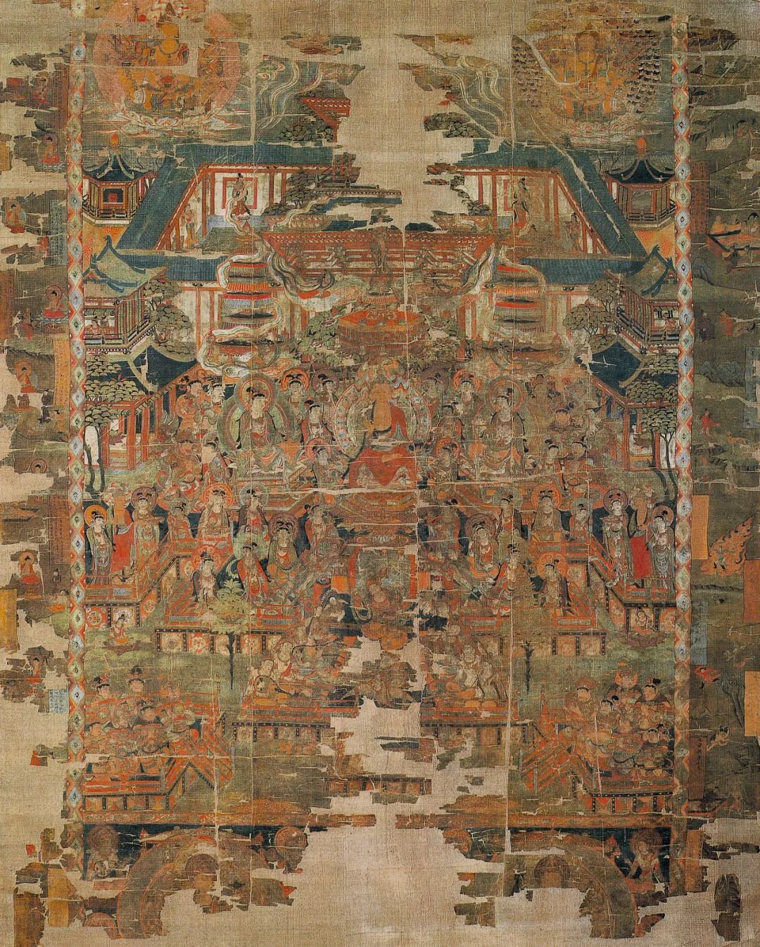 经洞里发现的这批丝绢画,多数是晚唐五代时期画师的作品,被封藏在洞窟中800余年,不见阳光。因此受到的氧化及人为破坏相对较小,颜色饱满艳丽,有的甚至鲜艳如初。