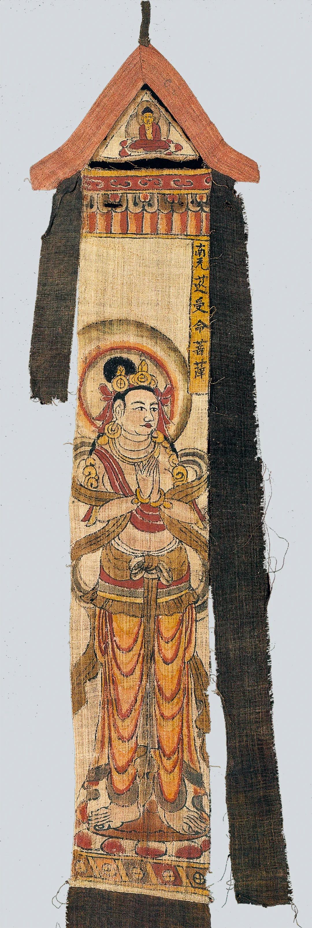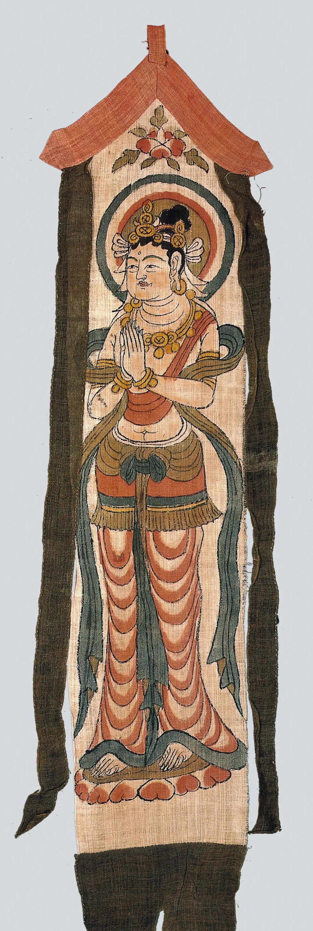 从藏经洞发现的这批幢幡来看,题材多是各类菩萨、金刚力士的单尊像。从这些遗存的幢幡上,我们能看到一千多年前东西方文明交融的信息。对于我们研究和了解这一时期的历史、艺术、宗教等,无疑是珍贵的一手资料。