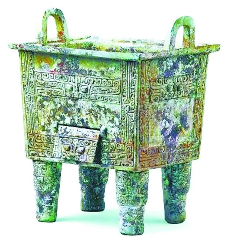 1989年从江西新干大洋洲商墓中出土的一件温鼎,便是封装式的,现收藏于江西省博物馆。江西这件温鼎器形相当精美,定名为“兽面纹双层底铜方鼎”。据《商代江南——江西新干大洋洲出土文物辑粹》一书介绍,此鼎系两次铸接成形,活门先铸,鼎体浑铸,并与活门相连,“整个器物造型奇特之处在于夹层,可在内放置炭火,保持鼎内食物常温不冷”。北京故宫博物院也收藏有一件同形制的温鼎。