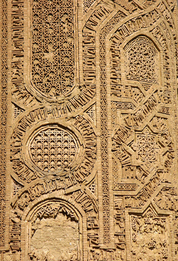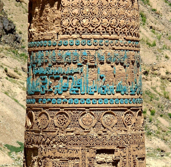 作为伊斯兰教胜利的象征,普遍认为贾姆宣礼塔是为纪念勃兴于阿富汗西部的古尔王朝(1150-1216)的一场重大军事征服胜利而建造。在古尔王朝的装饰艺术中,精美繁复的砖石装饰尤其受到重视。这一高度复杂的工艺被运用在贾姆宣礼塔表面,大面积的精美花边砖饰保留至今,基本覆盖了整座尖塔。
