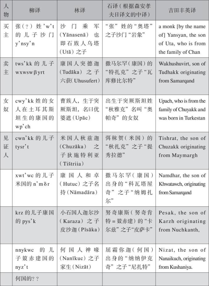 作为见证人,以下的人在场:弭秣贺的秋扎克之子提秀拉德、撒马尔罕的科瓦塔屋奇之子纳姆扎尔、努奇康斯的卡尔兹之子皮萨卡、屈霜纳迦的纳纳伊克奇之子尼扎特。