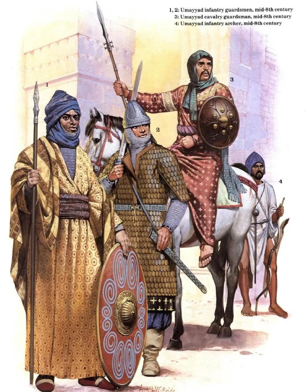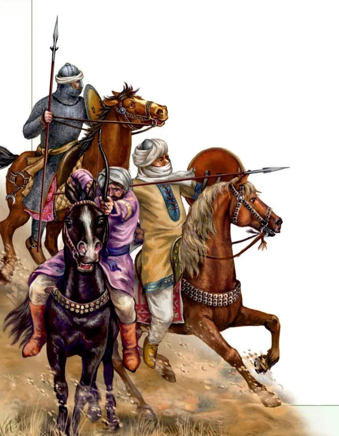 晚期的伍麦叶王朝军队与此同时,苏禄又派麾下的更多骑兵进行第二轮进攻。他们按照草原游牧民族的一贯风格,用大量轻装骑射手发射的箭矢压制对方火力,然后让重甲骑兵尝试直接越过壕沟。先前溃散的粟特步兵则会再次跟进,扩大重骑兵们冲开的缺口。由于己方占据附近的小山,所以可汗能直接观察阿拉伯人的全盘布置,不时传令手下实施针对性打击。加之突骑施军队的规模实在过于庞大,弄得易卜拉欣将附庸都全部派上场也显得无济于事。最后退至行李车阵内侧,依托这道最后的防线继续顽抗。
