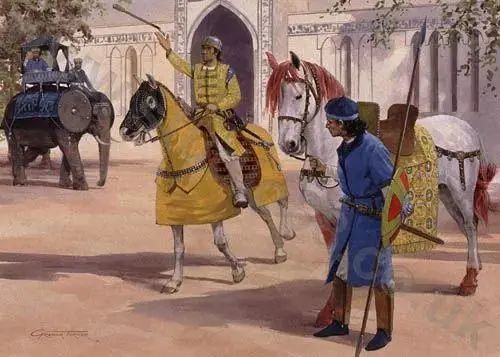 加兹尼帝国与沙希亚王朝的对峙公元1001年,超过65000人的加兹尼军队开始南下。他们轻易通过无人看守的开博尔山口,直扑位于兴都库什山以南的交通重镇白沙瓦。队伍里的绝对核心,是苏丹本人亲自指挥的古拉姆近卫军骑兵。由于默罕默德大力推行波斯式的帝国行省制度,所以有充足财力来供养这些人马具装的突厥军事奴隶。但边境上的众多草场,也为帝国提供了许多保持游牧作风的部落武士。这让此次远征的骑马部队,达到了非常可观的15000人规模。同时,更多被统称为加齐的圣战志愿者,为苏丹贡献了足足50000个轻重步兵。其中不乏阿拉伯或波斯血统的军事殖民者后裔,更多则是散居在众阿富汗山头的部落附庸。